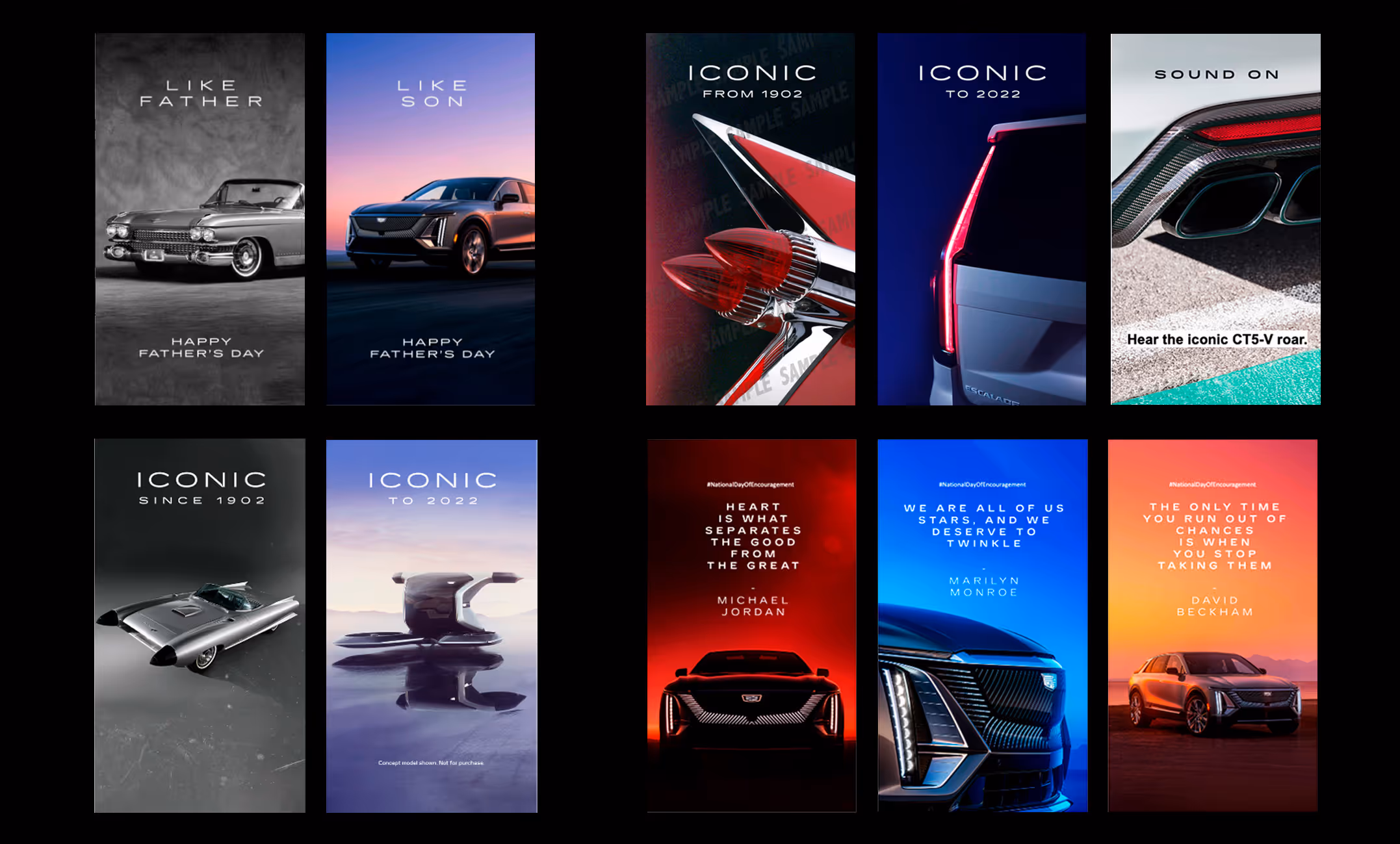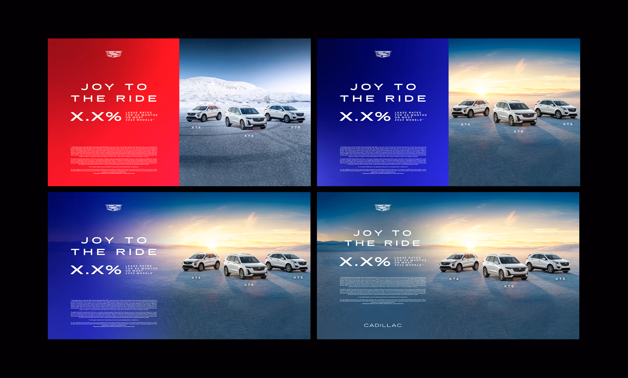 Примеры разработки из более чем ста национальных розничных рекламных кампаний для Cadillac, GMC и Buick за время моей работы в Leo Burnett. Следующий визуал обеспечил масштабируемость на более чем 300 дилеров.
